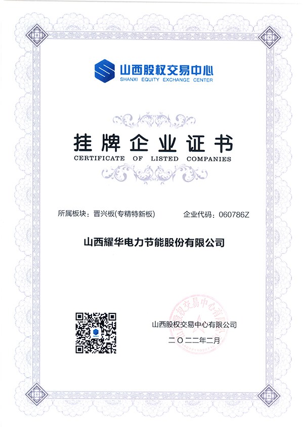 山西耀華電力節(jié)能股份有限公司是國內第一家提出谷期電集中儲能蓄能的高新技術企業(yè),其主營業(yè)務:電力市場購售電交易運營、電力設施安裝檢測運維、 低谷電采暖設備的研發(fā)、生產、安裝、銷售及運行服務于一體。公司成立于1996年,落座于山西省太原市,現(xiàn)有股權代碼在晉興板上市的專精特新企業(yè),中國建設科技自主創(chuàng)新優(yōu)勢企業(yè),山西省節(jié)能協(xié)會理事單位,擁有自主知識產權,獲得國家多項專利,參編了電采暖國家標準(JC/T60008-2021)和主編了山西省地方標準(DBJ04/T291-2012)。擁有國家發(fā)明專利11項,軟件著作權6項。其中“大數(shù)據(jù)遠程集中監(jiān)控運維服務平臺”早在2019年就在河北、天津、山西等多個煤改電地區(qū)投入試用,節(jié)能效果非常顯著,運維方便快捷,用戶滿意。
